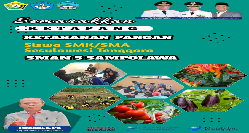 Dalam rangka menyemarakkan Ketahanan Pangan (Ketapang) siswa SMK/SMA se-Sulawesi Tenggara pada 6 Juni 2023, SMA Negeri 5 Sampolawa berpartisipasi dengan menyiapakan kurang lebih 800 media tanam yang akan diisi oleh berbagai jenis komoditi pangan.