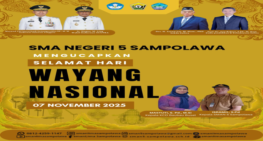 Dengan semangat Hari Wayang Nasional 2025, SMA Negeri 5 Sampolawa terus berkomitmen mendidik generasi yang berkarakter, berbudaya, dan berprestasi.