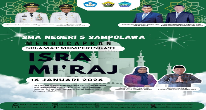 SMA Negeri 5 Sampolawa memperingati Isra Mi’raj Nabi Muhammad SAW yang jatuh pada Jumat, 16 Januari 2026,sebagai bentuk refleksi spiritual dan penguatan nilai-nilai keimanan di lingkungan sekolah.